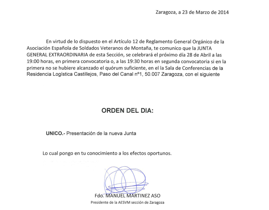 ZARAGOZA: JUNTA GENERAL EXTRAORDINARIA