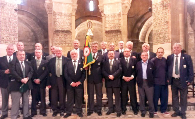 Nos situamos todos alrededor del altar, con el Guión portado por el presidente, Manuel Martínez Aso, y el Pater Ignacio Zamboray Arrondo, procedió a su bendición, continuando con la Santa Misa. Una vez bendecido en Guión paso a manos del Portaestandartes, Ricardo Carramiñana, quien lo portó durante toda la Misa.