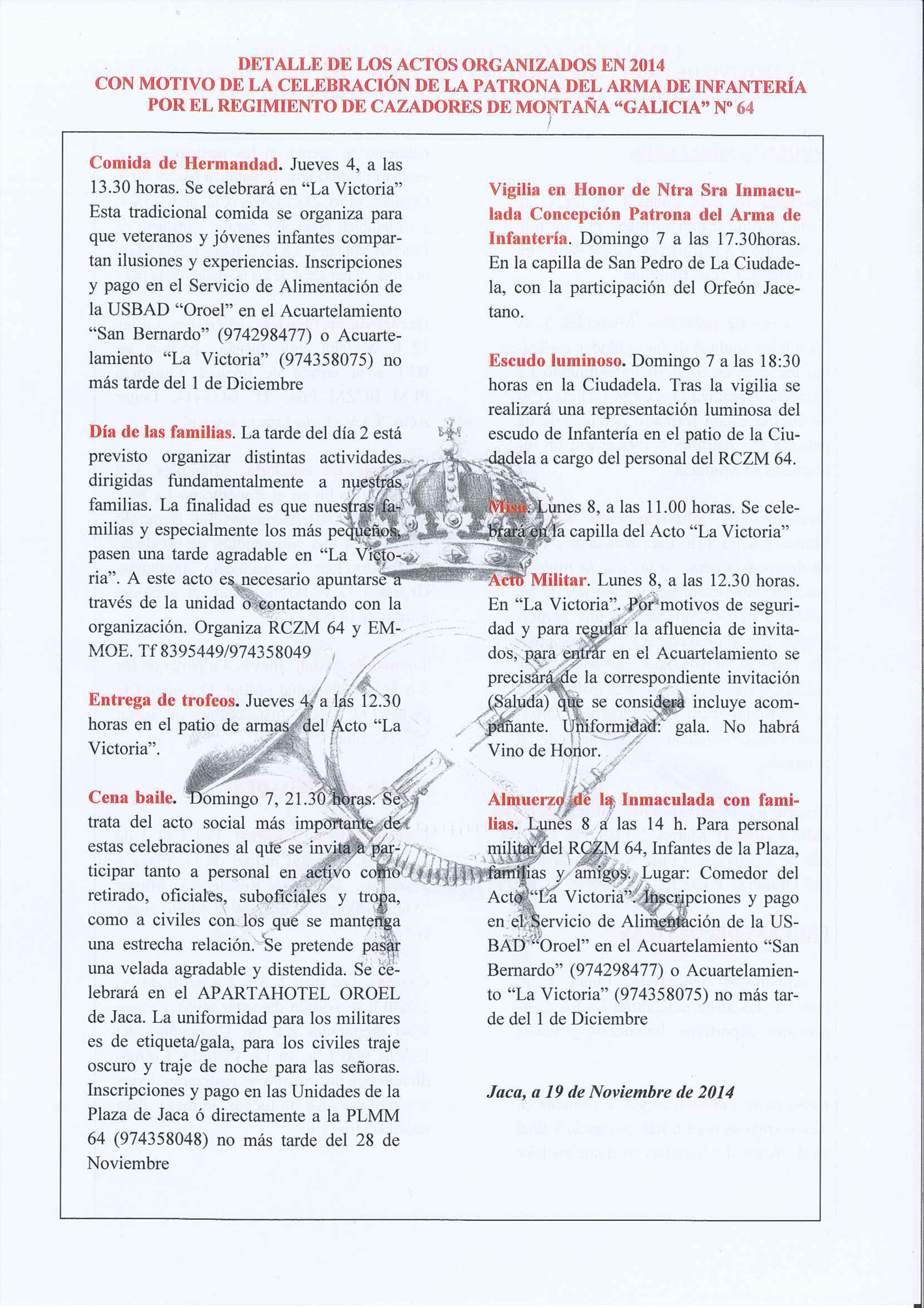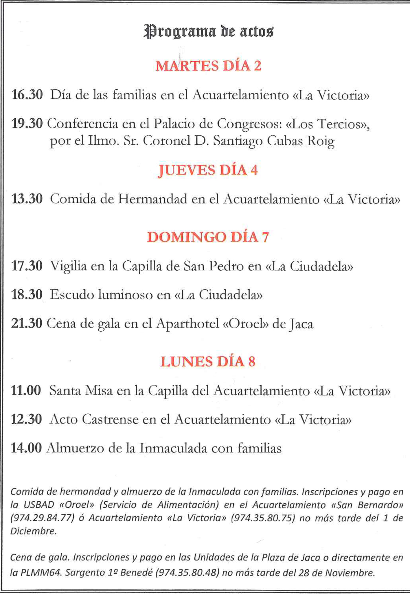 En Zaragoza tambien se celebraron actos en honor de Santa Barbara, y el dia 8 en honor de la Inmaculada.