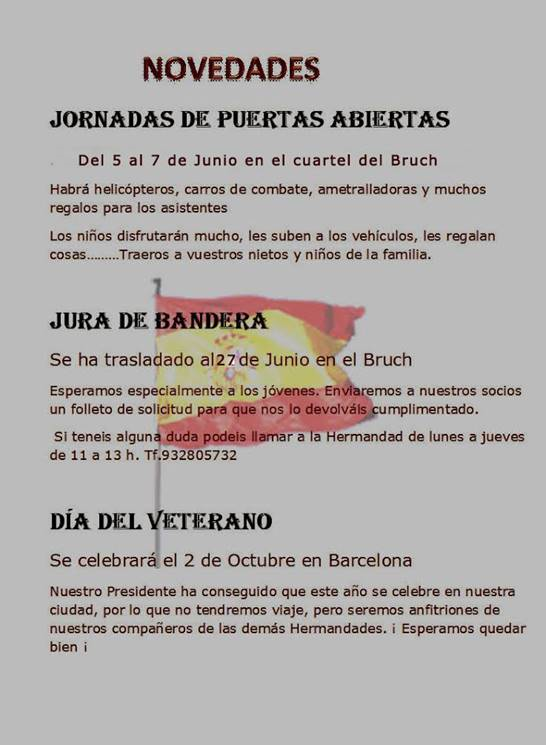 Publicamos las nuevas fechas de los actos que se van a celebrar en Barcelona con motivo del dia de la FFAA.