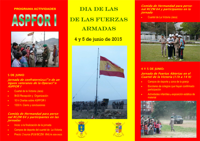 Publicamos los actos que con motivo del dia de las Fuerzas Armadas se celebraran en la Plaza de Jaca.