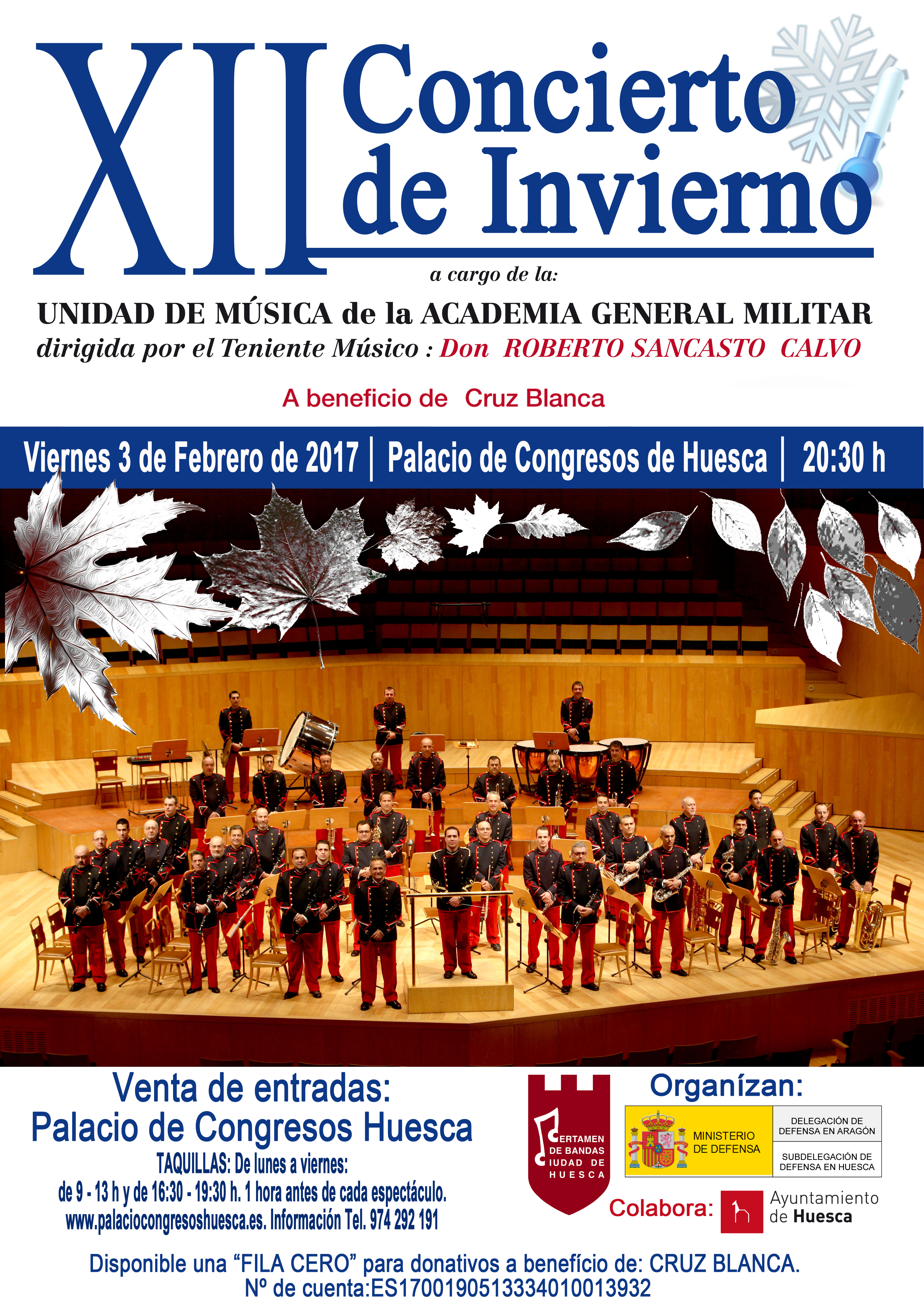 Patrocinado por nuestros compañeros de la Hermandad de la FFAA y la GC, se ha programado un concierto en Huesca.Sera la Musica de la AGM la protagonista de este concierto.…CARTEL ANUNCIADOR
