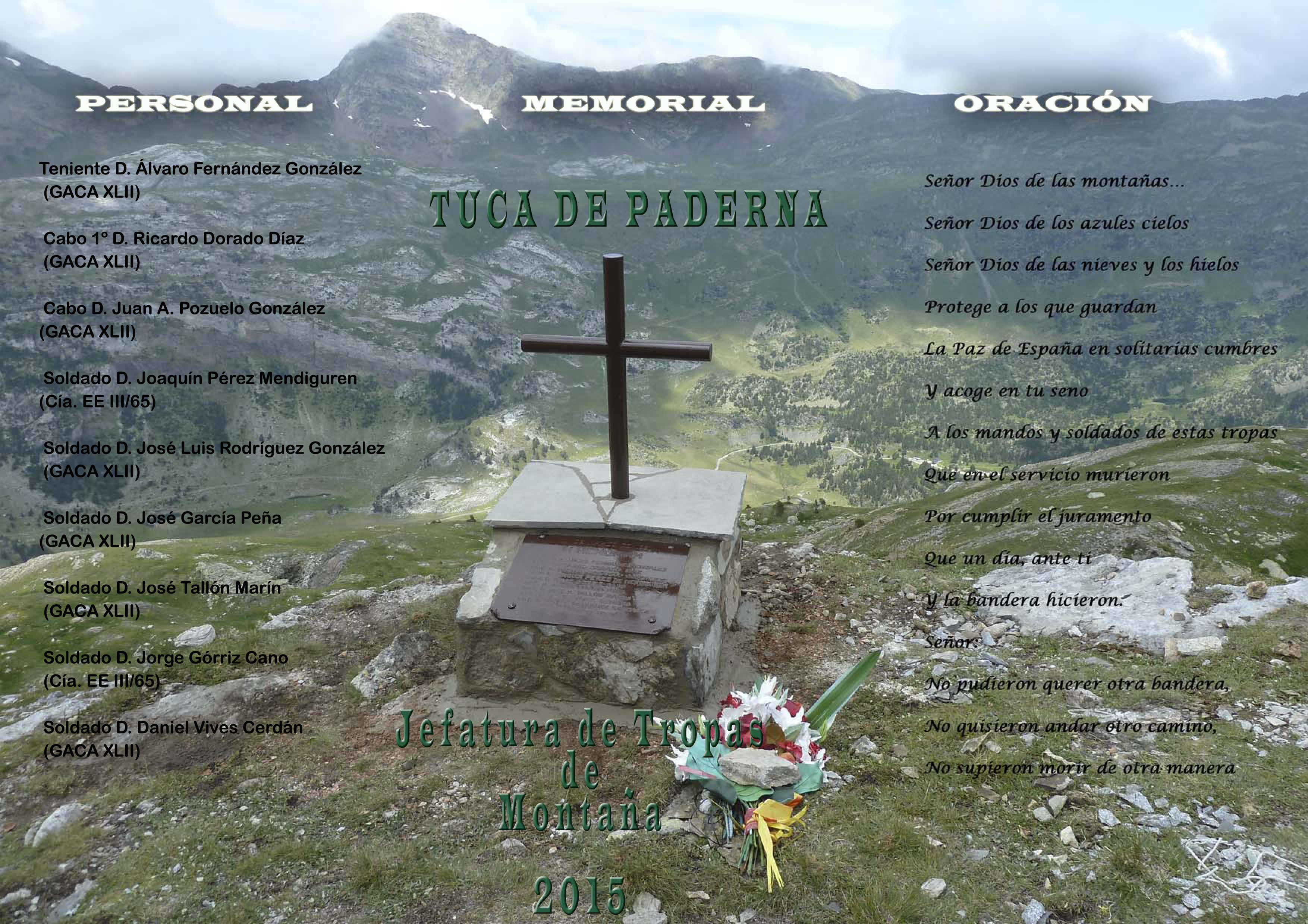 Un año mas se nos convoca al Memorial Tuca de Paderna. El nuevo General de la Brigada Aragon, a la que pertenece el Regimiento Galicia 64, unico Regimiento de Montaña que permanece en activo en nuestro Ejercito,ha autorizado la continuidad de la celebracion del Memorial Tuca de Paderna, y sera el Regimiento Galicia quien tome a su cargo la ejecucion de los actos.