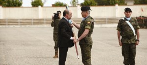 El acto, que fue presidido por el General jefe de la Division San Marcial, a la que pertenece esta Brigada y en el que formaron una representacion de todas las Unidades de la Brigada, entre ellas nuestro RCZM Galicia 64, consistio en la entrega del guion, acto a los caidos, y desfile .