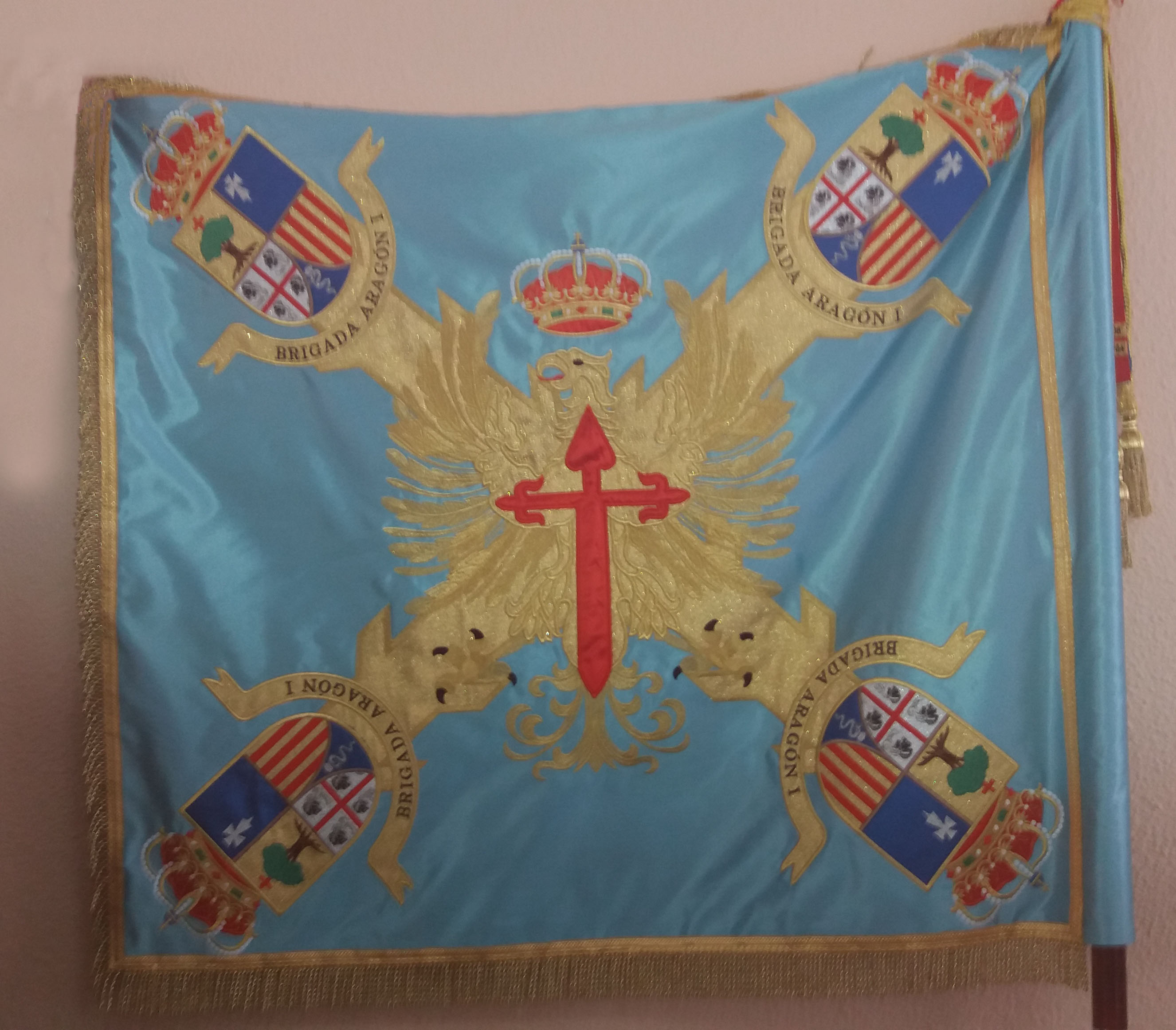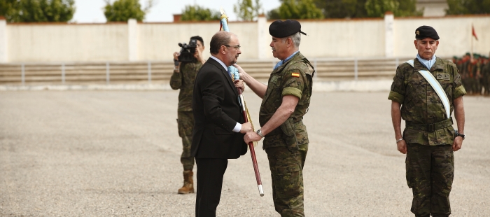 El pasado dia 25 de Abril, en la sede de la recien creada Brigada Aragon I, se procedio a la entrega del Guion de la misma, que entrego el Presidente de Aragon, y la recibio el General Jefe de la Brigada, General Chapas.