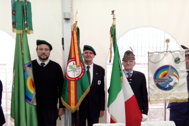 Posteriormente en una carpa adjunta al Monasterio, se realizó el acto institucional en el que se entregaron unos recuerdos por parte de los Artilleros de Montaña, asi como por parte de los Alpinos allí presentes.