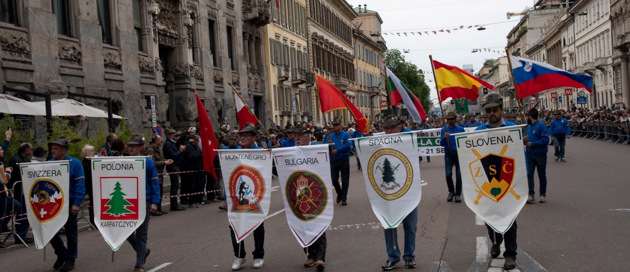 Ya al siguiente día domingo, la gran fiesta, el Desfile por las calles de Milán, este año presidido por la Ministra de defensa Italiana. El pasado año lo presidio el Presidente de la República. Impresionante demostración de cariño del pueblo italiano a sus Alpini. El desfile duro 11 horas. La fiesta oficial había terminado. Pero la fiesta no oficial continuaba en las calles, encontrándonos alpinis en la calle, el metro, en los parques, llevando la alegría en sus cuerpos. Se habían apuntado 40.000, que fueron acompañados muchos de ellos por sus familias. El domingo terminaba la Adunata, y se despedían hasta el próximo año en Rimini, en la costa del Adriatico. Volveremos a ir a representar a España en la Adunata con nuestros amigos Italianos el próximo año.
