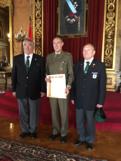 El pasado 22 de mayo, fue la fecha elegida para satisfacer nuestra ilusión y cumplir justamente lo acordado por la Asociación Española de Soldados Veteranos de Montaña en la Asamblea General Ordinaria de noviembre 2017, bajo el mandato del presidente Vicente Valdivielso, la imposición de la Medalla de Oro de la Asociación al Teniente General D. Fernando Aznar Ladrón de Guevara Inspector General del Ejército.