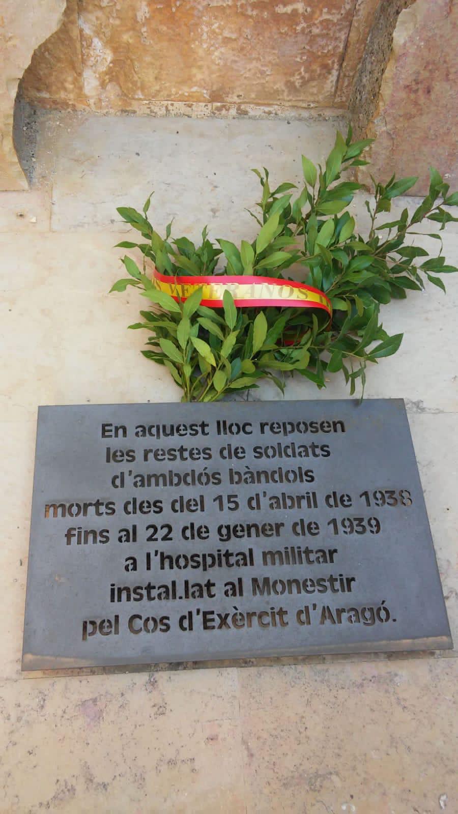 Con motivo de la festividad de Todos los Santos, la Sección Delegada de Lérida ha rendido su particular homenaje a los caídos por España, depositando una composición floral, en la placa en memoria a mitad caídos en los Avellanes, con una cinta con la siguiente inscripción: “SOLDADOS VETERANOS DE MONTAÑA “, colocada por el socio de dicha Sección José Pla.