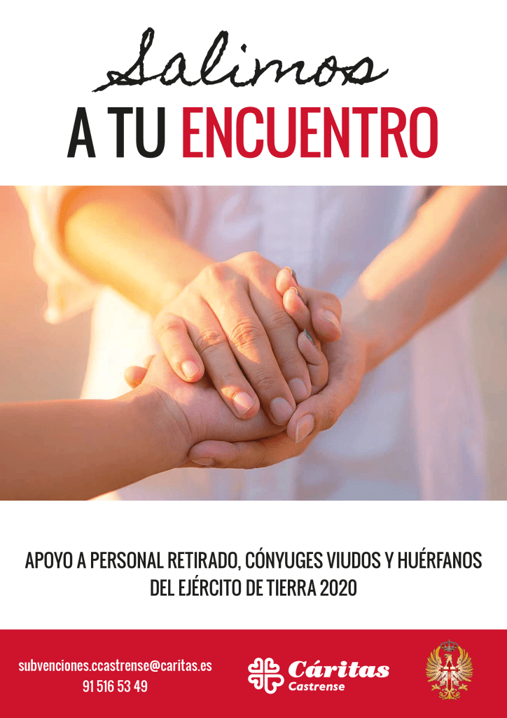 “Se ha publicado en la web de Cáritas Castrense (www.caritas.es/castrense) ,la convocatoria de subvenciones 2020 de la DIAPER del ET y del MAPER del EA para el desarrollo de actividades asistenciales, integración, promoción laboral y/o personal, dirigidas a cónyuges viudos, huérfanos y personal retirado en situación de vulnerabilidad”.