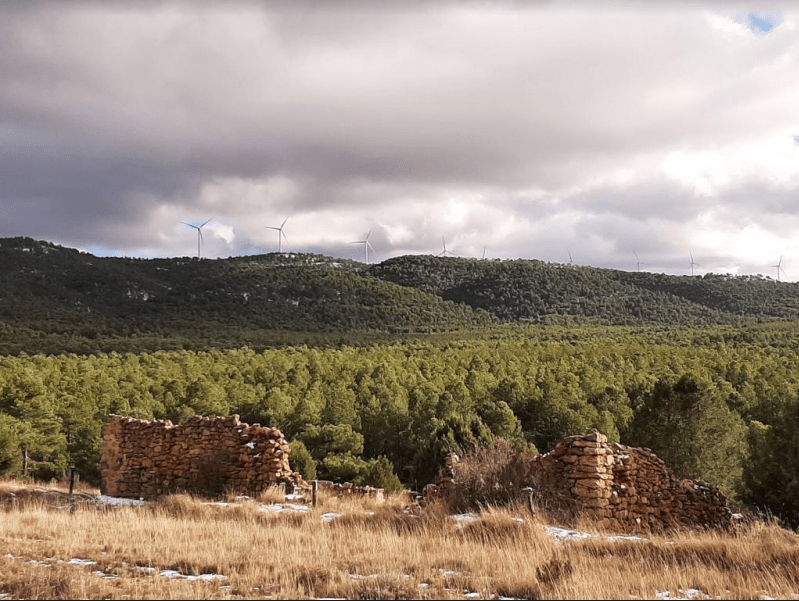En está interesante fotografía del pasado 28 de diciembre se pueden ver los molinos de viento de Formiche.