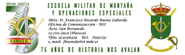 Módulo Específico: Escuela Militar de Montaña y Operaciones Especiales (EMMOE) – Jaca – (Huesca) fase de armamento, topografía, tiro, explosivos, escalada montaña invernal, táctica y transmisiones.