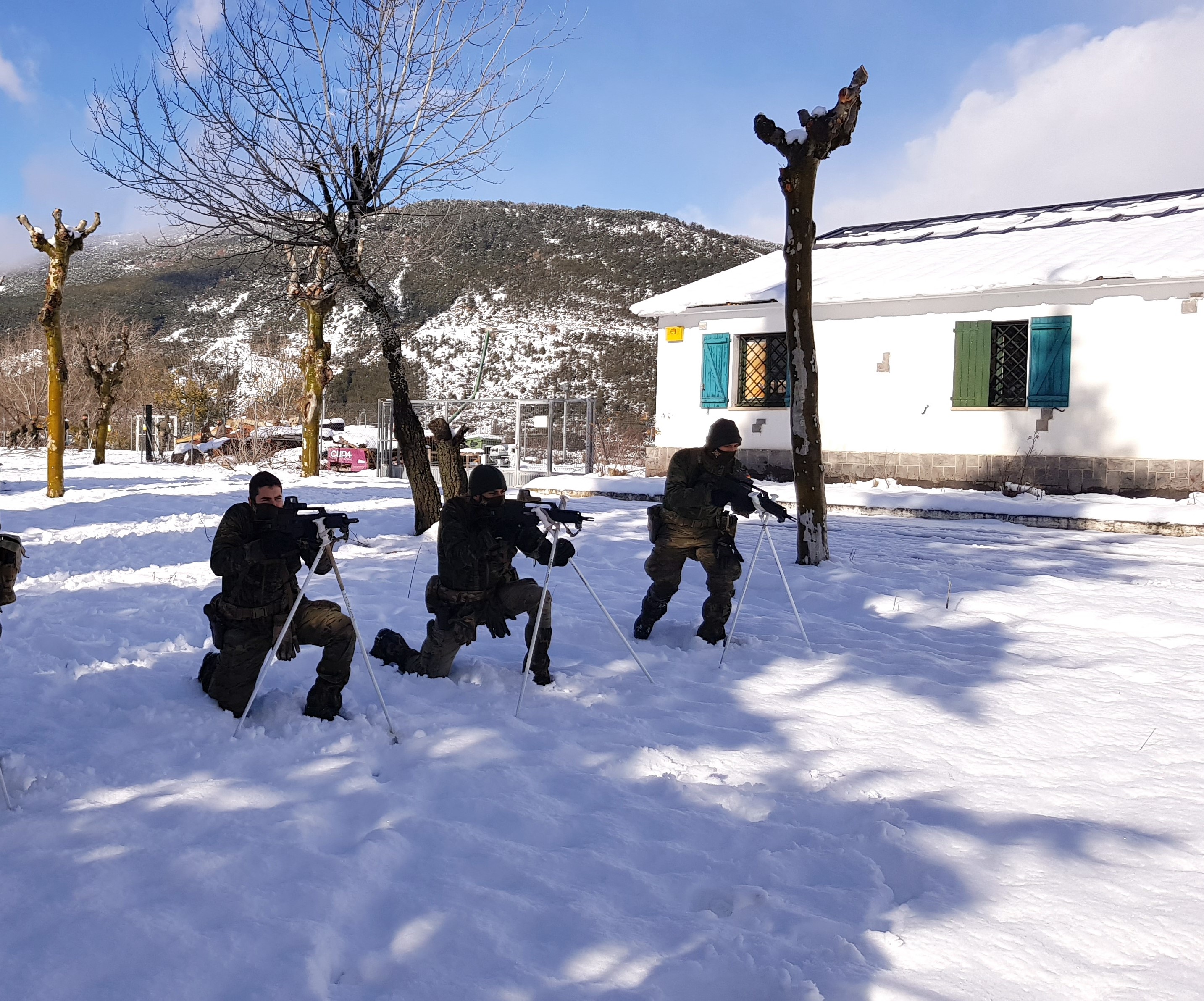 Módulo Específico: Escuela Militar de Montaña y Operaciones Especiales (EMMOE) – Jaca – (Huesca) fase de armamento, topografía, tiro, explosivos, escalada montaña invernal, táctica y transmisiones.