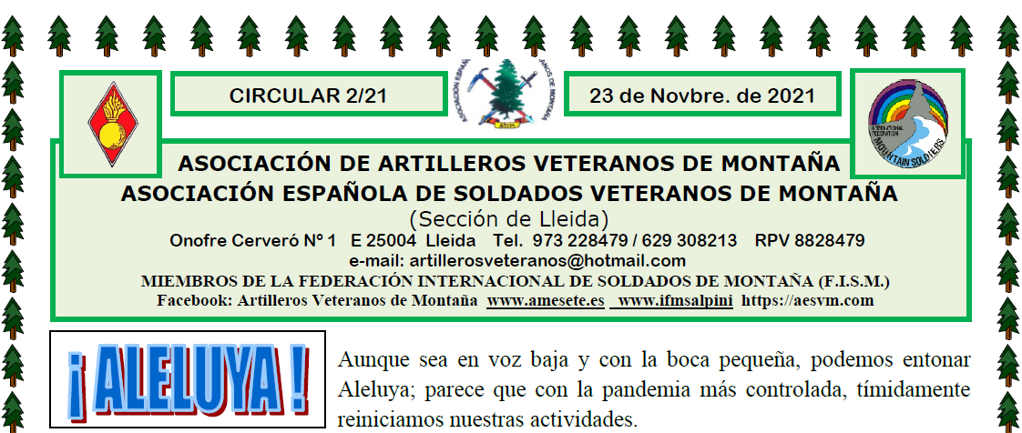 Adjuntamos la publicación de la circular 02/2021 de la Asociación de Artilleros Veteranos de Montaña, de NOVIEMBRE de 2021, que publica la Sección Delegada de Lérida.