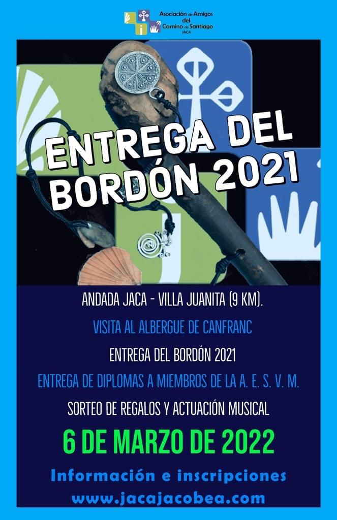 16.00h Entrega del Bordón 2021 a D. Ignacio Beneito Mora, seguidamente entregaremos un diploma de agradecimiento a los miembros de la Asociación Española de Soldados Veteranos de Montaña, que han realizado durante el pasado 2021, las labores de marcaje de todo el tramo del Camino de Santiago francés desde Somport hasta Undués de Lerda, y posterior sorteo de regalos.