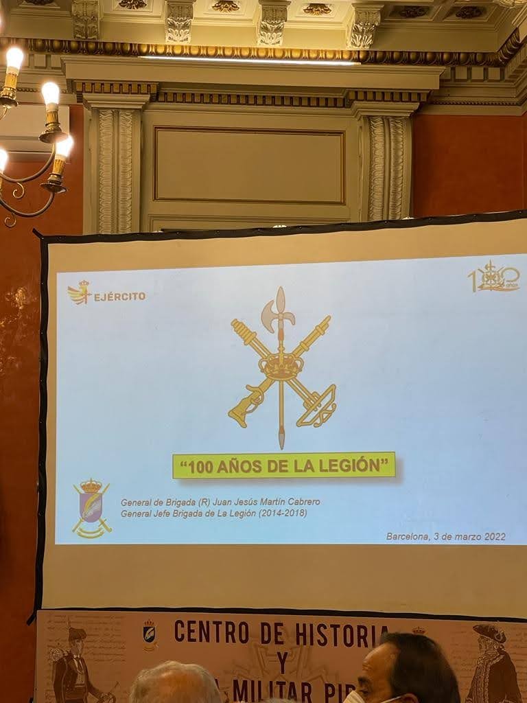 Nuestro socio Lluis Coll nos envía unas fotografías tomadas con ocasión de su asistencia a la conferencia que, sobre la historia de la Legion, dió ayer tarde el General de Brigada D. Juan Jesús Martin Cabrero, General Jefe de la Brigada de la Legión «Alfonso XIII». Que resultó muy brillante e interesante y que agradó sobremanera a todos los asistentes.