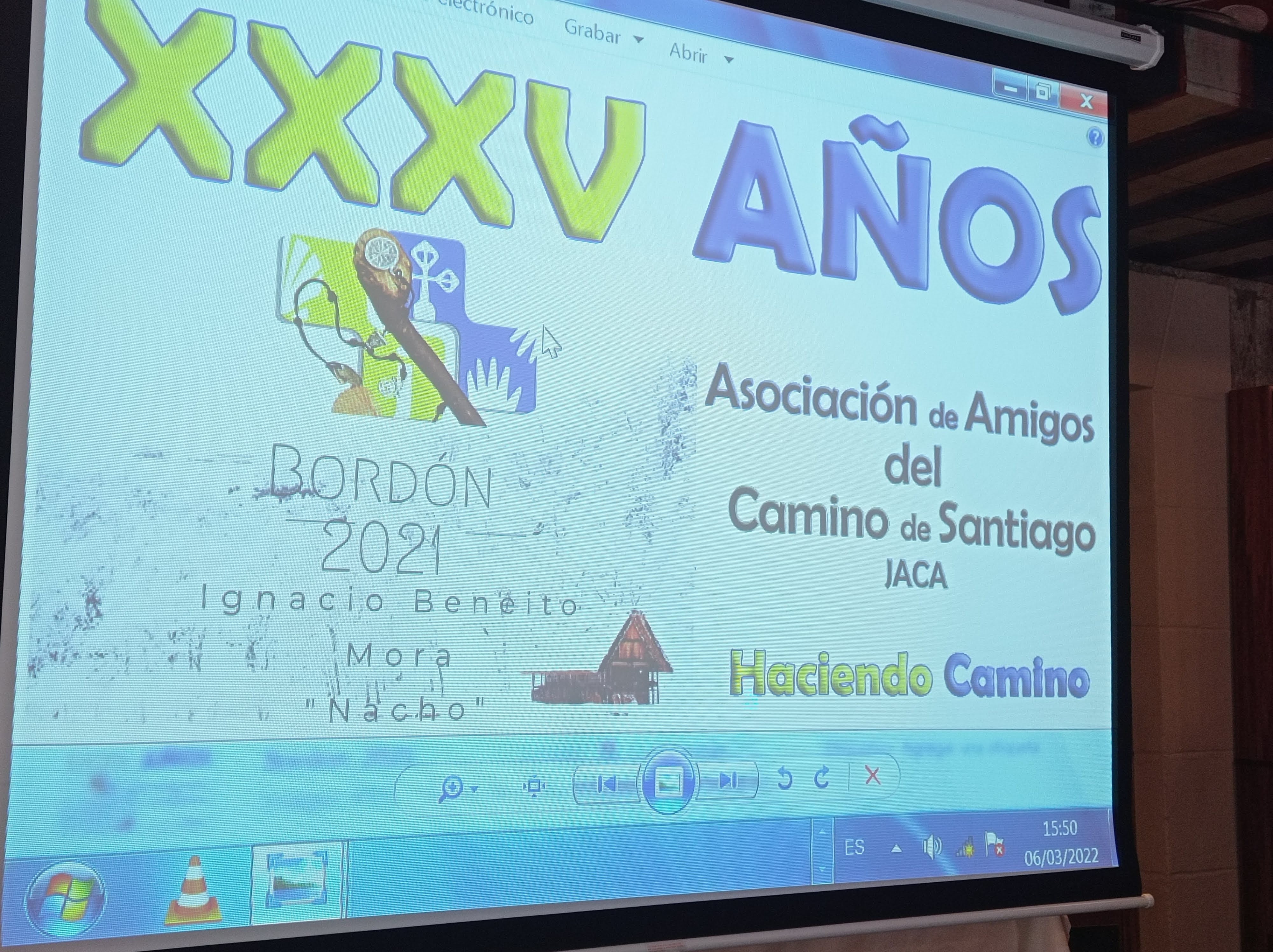 La entrega del premio Bordón-2021 ha estado precedido de un emotivo vídeo sobre la personalidad y excepcional trayectoria desarrollada por Nacho desde su llegada a Jaca y de su paso por la Asociación de Amigos del Camino de Santiago, de la que es socio desde hace diecinueve años y en la que desempeñó durante varios años el cargo de Secretario. No puedo omitir que el visionado del vídeo nos ha emocionado a todos y, en especial, a nuestro querido amigo Nacho, que ha sido capaz de recuperar el ánimo suficiente para agradecer la distinción que hoy le entregaban con unas breves, pero sentidas palabras para con sus compañeros de la Asociación anfitriona.