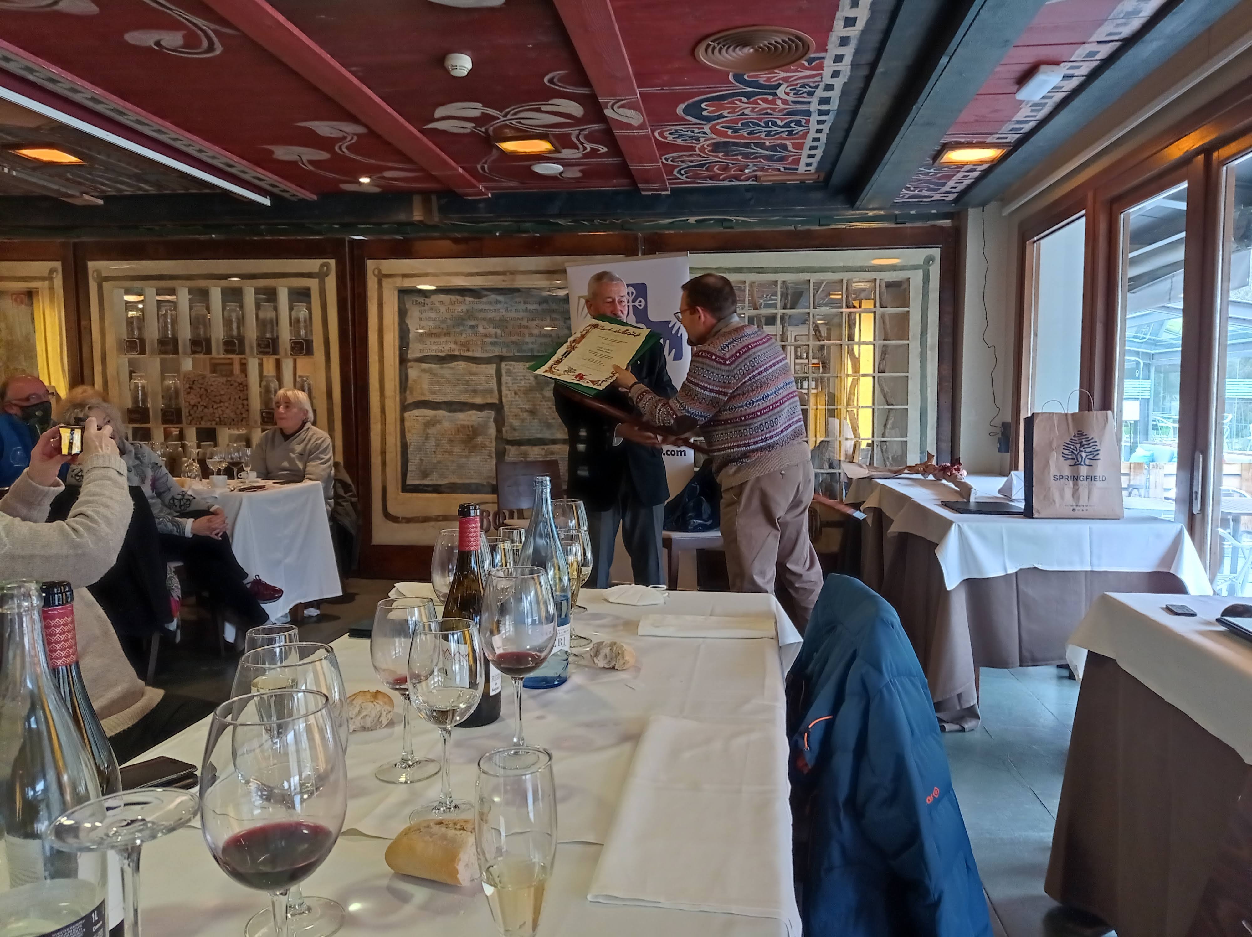 Hoy domingo, 6 de marzo, ha tenido lugar en el Hotel Santa Cristina de Canfranc la entrega del Bordón-2021 de la Asociación Amigos del Camino de Santiago de Jaca, por no haberse podido entregar en su día a causa de las restricciones Covid imperantes entonces, a nuestro socio y Presidente de la Sección Delegada de Jaca/Sabiñánigo Ignacio Beneito Mora, conocido por todos como «Nacho». Así mismo, se ha aprovechado dicha celebración para distinguir a nuestra Asociación con unos diplomas acreditativos de la colaboración prestada este pasado año en el repintado de la señalización del Camino de Santiago Francés en su tránsito por la provincia de Huesca.