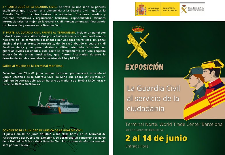 Nuestra SD de Barcelona nos informa de la exposición: “LA GUARDIA CIVIL AL SERVICIO DE LA CIUDADANÍA’, que tendrá lugar en la Terminal Norte del World Trade Center, Muelle de Barcelona, s/n. Del 3 al 14 de junio, en horario 10/14 y 16/20 horas