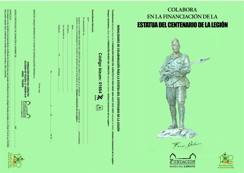 Como continuación a lo que publicamos hace algo más de un año en esta página (https://aesvm.com/2021/02/10/colecta-monumento-a-la-legion/) sobre la financiación del monumento conmemorativo del centenario de la Legión Española a erigir en Madrid, ya instalado desde el pasado 20 de septiembre en la confluencia de las calles Vitrubio y José Gutiérrez Abascal, zona este de la plaza de San Juan de la Cruz, frente al EMAD, motivo por el cual se solicita difundamos la campaña de patrocinio para completar la financiación de la escultura, obra del escultor Salvador Amaya y diseñada por el pintor Ferrer Dalmau.