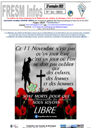 Adjuntamos la publicación, N°24 de 27 de Noviembre de 2022, de la revista de los Alpinos Franceses FRESM Infos, en la que publican la portada del último número de nuestra revista EL ABETO (nº 240) y un enlace para poder leerla o descargarla.