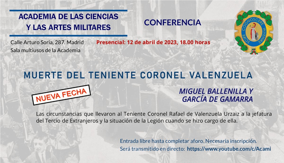 La conferencia abordará las circunstancias que llevaron al Teniente Coronel Rafael de Valenzuela Urzaiz a la jefatura del Tercio de Extranjeros y la situación de la Legión cuando se hizo cargo de la misma. El estado de las operaciones en el Protectorado marroquí, con detalle de la situación en la Comandancia General de Melilla, zona en la que murió heroicamente el jefe de la Legión.