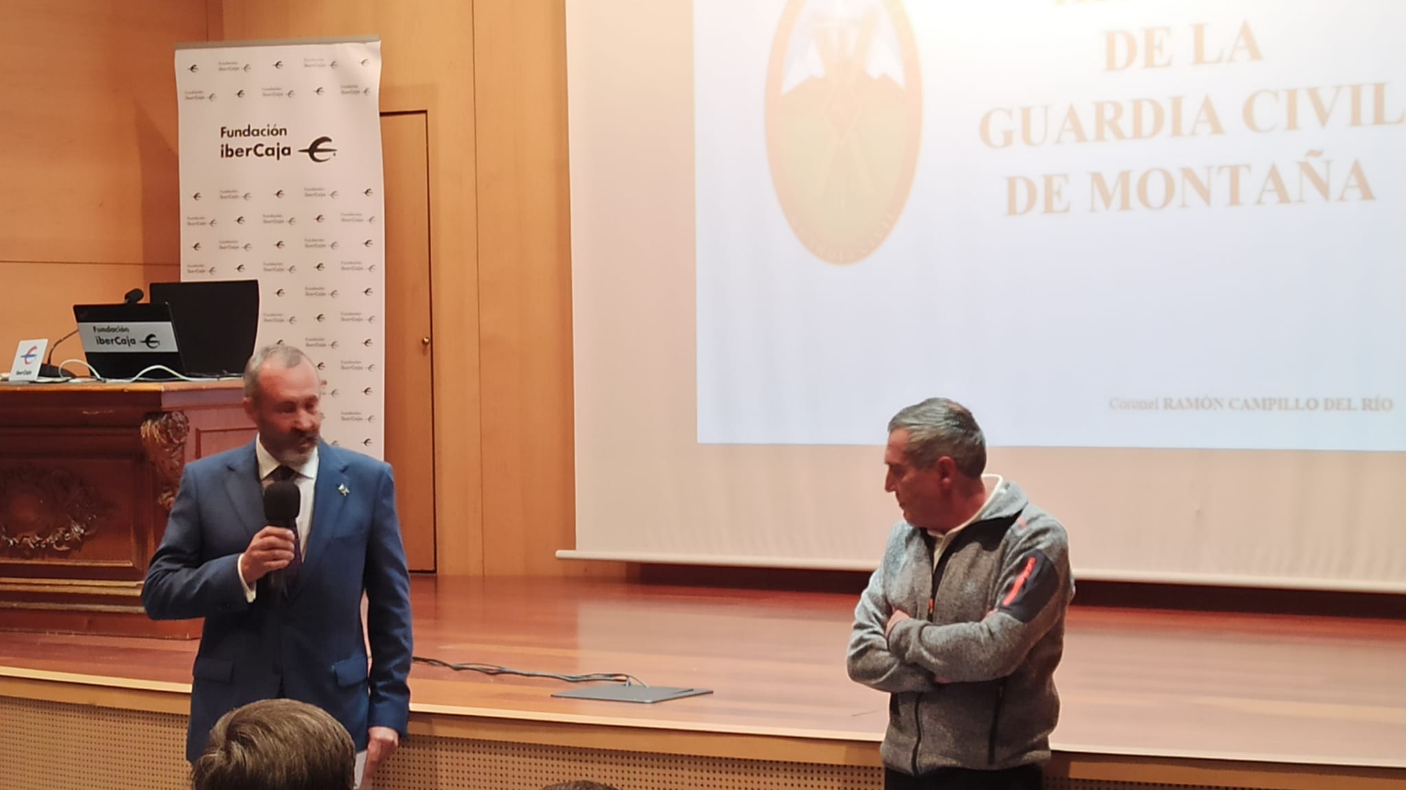 El pasado tres de mayo se dio por concluido el ciclo de conferencias programado conjuntamente por la Subdelegación de Defensa, Hermandad de Veteranos de las FAS y GC y la AESVM de Huesca. Dentro de éste nos correspondió organizar las dos últimas que tuvieron lugar el 26 de abril y tres de mayo. Con una gran afluencia de público, que llenó el salón de actos de Centro Cultural de Ibercaja, tuvimos la oportunidad de conocer el pasado, presente y futuro del Servicio de Montaña de la Guardia Civil y también los entresijos de todo lo que sucedió en Canfranc durante los años de la Segunda Guerra Mundial, en dos excelentes conferencias impartidas por los Coroneles Ramón Campillo del Río y Fernando Martínez de Baños Carrillo.
