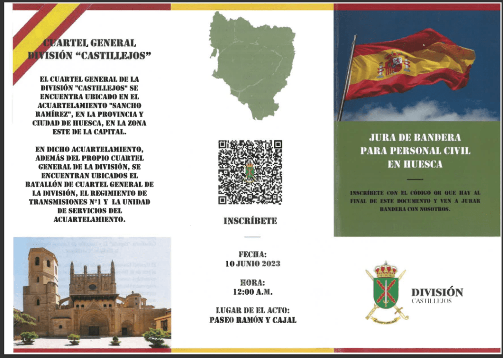 Se remite información relativa a la Jura de Bandera para Personal Civil que tendrá lugar el próximo 10 de junio en Huesca.