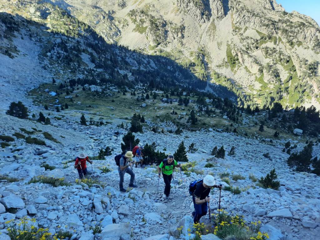 El pasado viernes día 11 de agosto, varios componentes de la Sección Delegada de Huesca, haciendo un «break» durante las Fiestas de San Lorenzo, realizaron un recorrido con inicio en el Balneario de Panticosa, que transcurrió por la GR-11, alcanzado los ibones de Brazato, Perforau, Collado Alto de Brazato y Pico del Puerto (2717 m). El Bacías, a tiro de piedra, se dejó para una posterior ocasión, ya que el calor empezaba a apretar. La duración de la marcha fue de cinco horas y treinta y cinco minutos y salvamos un desnivel positivo de 1060 metros.