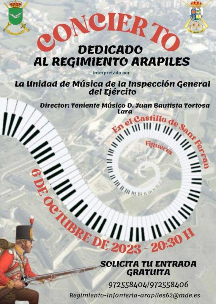 Interesante actividad cultural la que ha programado la Unidad de Música de la Inspección General del Ejército en homenaje al Regimiento de Infantería «Arapiles-62», que tendrá lugar en el Castillo de San Fernando de Figueras (Gerona) el próximo 6 de octubre.