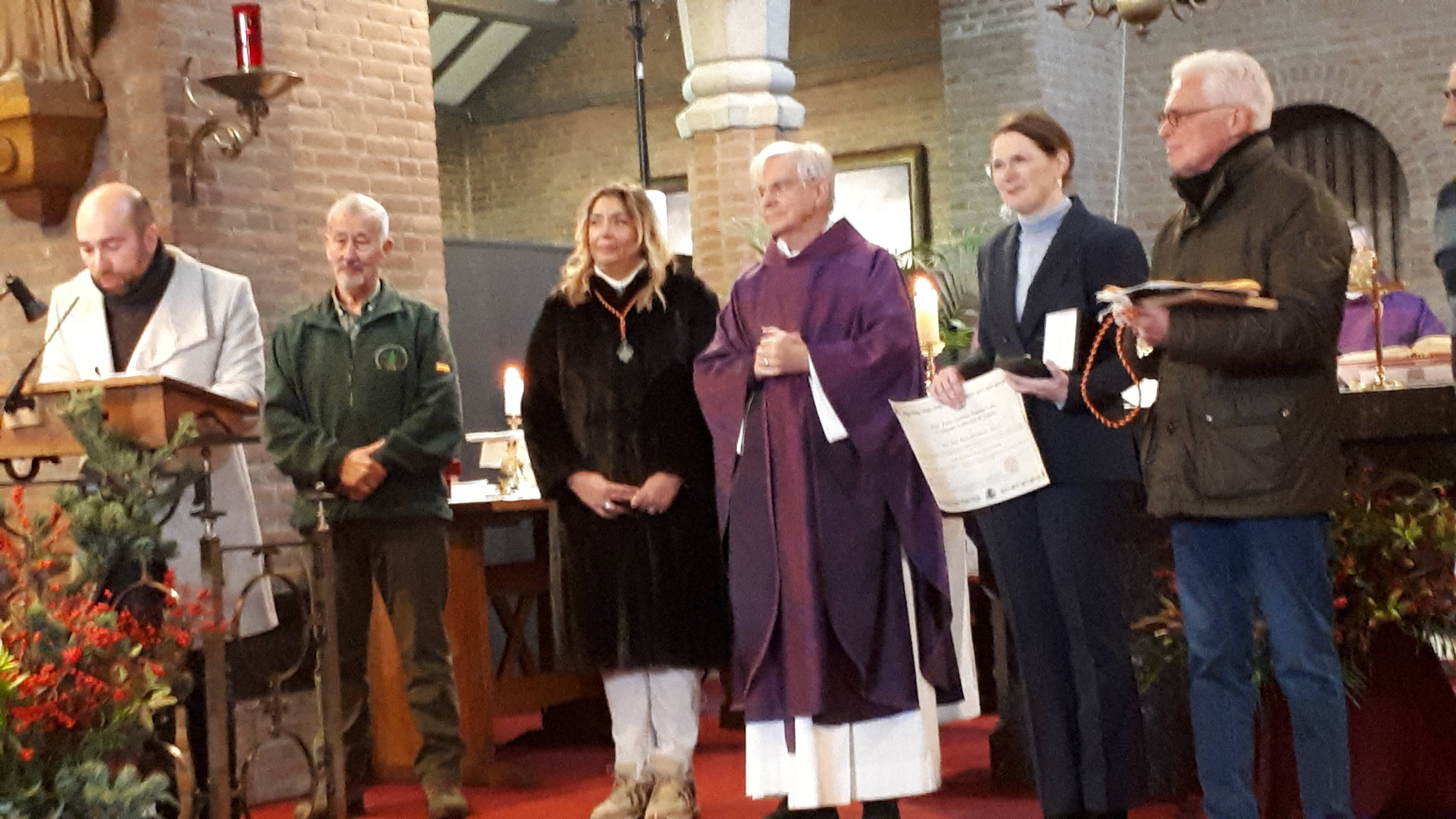 Nos levantamos, desayunamos y trasladamos a la orilla del rio Mosa, justo detrás de la Ermita, reedificada tras la IIWW. Estamos a unos -3 grados. Los acontecimientos se precipitan. Relato de los hechos acaecidos en diciembre de 1585. Palabras del General de División Lanchares. Responso del Obispo Castrense holandés, canto de la Salve Regina ante la ermita y traslado a la Iglesia de Empel, en donde se celebra la Misa con la presencia de un grupo vestido a la usanza de holanda de la época portando bandera con la Cruz de S. Andrés. Finalizada la ceremonia se procedió a la entrega de premios y condecoraciones de parte del arzobispado castrense español a la Sra. Paula por su dedicación a la Virgen y a España. Entrega de una bandera por parte de la Hermandad de la Virgen del Alcázar a la Inmaculada y entrega de la Bandera de mochila del Rgto de Infantería de Cazadores de montaña “GALICIA 64” que nuestro Coronel me confió para su entrega a la Inmaculada, en Empel. “plomos fundidos”. Después salió la emoción.