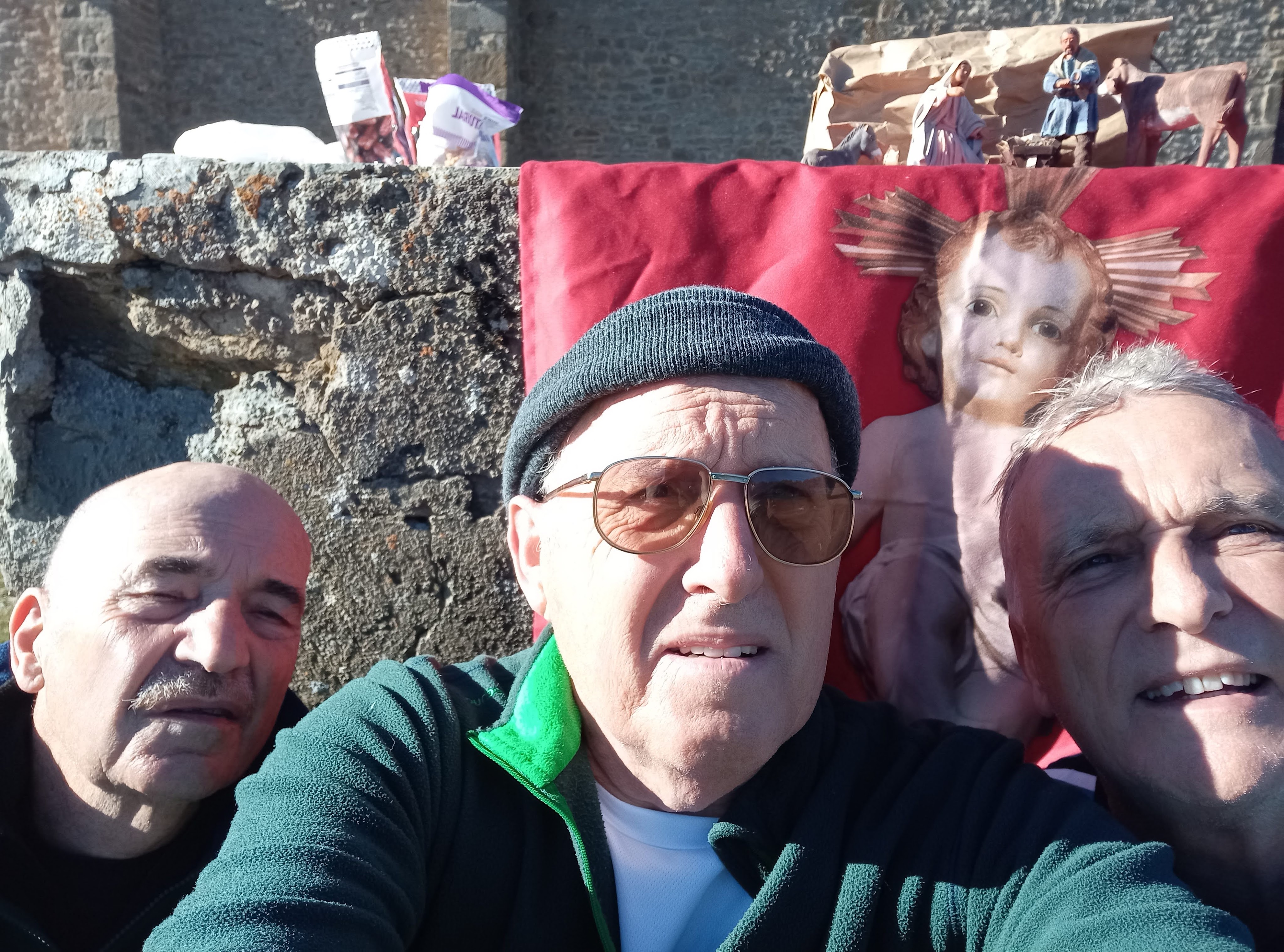 En la cumbre pusimos el Belén, adornado con nuestra Bandera, y le cantamos villancicos tradicionales. Se hicieron notar las voces femeninas que mejoraron ostensiblemente los tonos bajos y lúgubres de los veteranos montañeros.