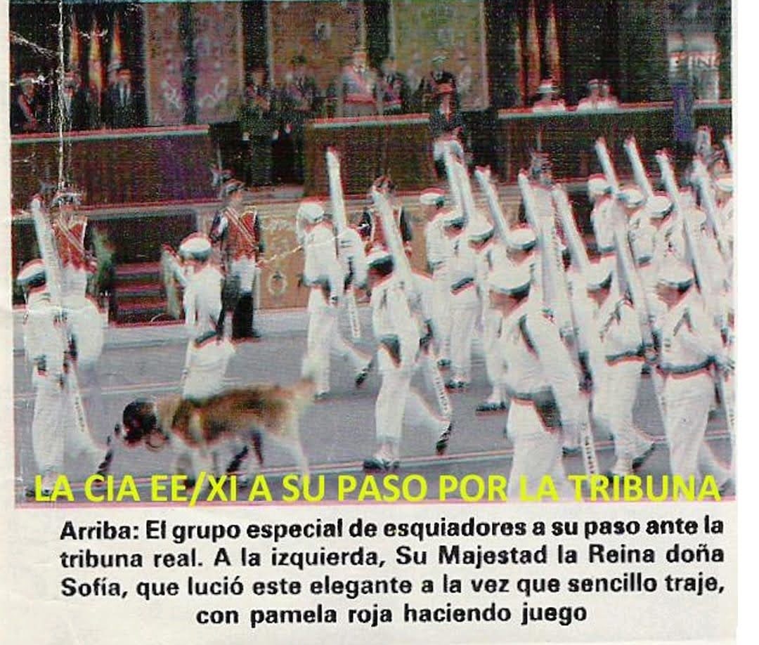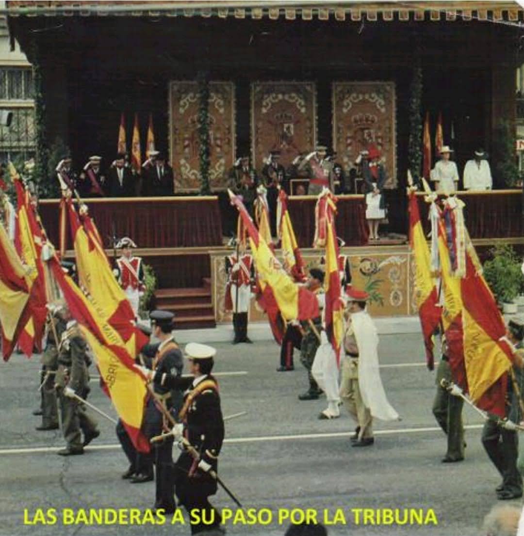 El ambiente en la calle fantástico, la gente animando y dando gritos de Viva España y Vivan las FAS. El desfile transcurrió sin incidentes, y al terminar, casi sin darnos tiempo a cambiarlos y lavarnos un poco, nos dijeron que teníamos que asistir a la comida que daban para las autoridades con la asistencia de Sus Majestades Los Reyes D Juan Carlos y Dña. Sofia.