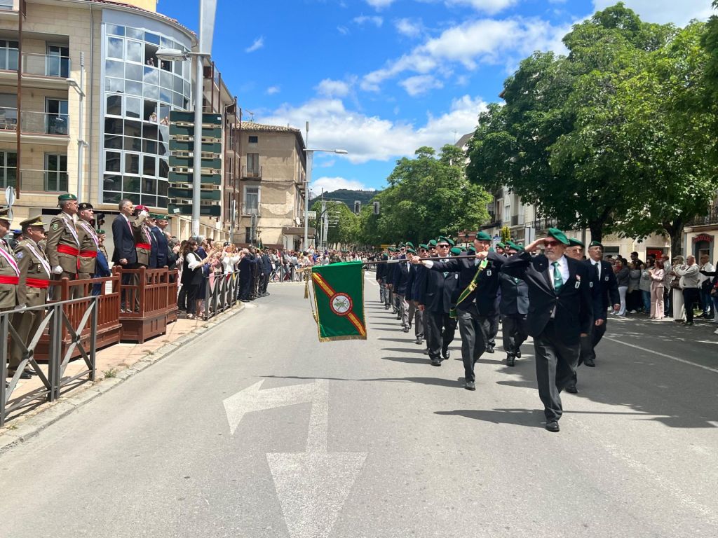 En este momento, un grupo de más de 30 Veteranos de Montaña, que estábamos en un acotado reservado para la Asociación, formamos de a tres y salimos desfilando detrás de la formación, para participar en el desfile por la ciudad de Jaca, mientras que el resto se dirigió a la zona reservada para poder presenciarlo.
