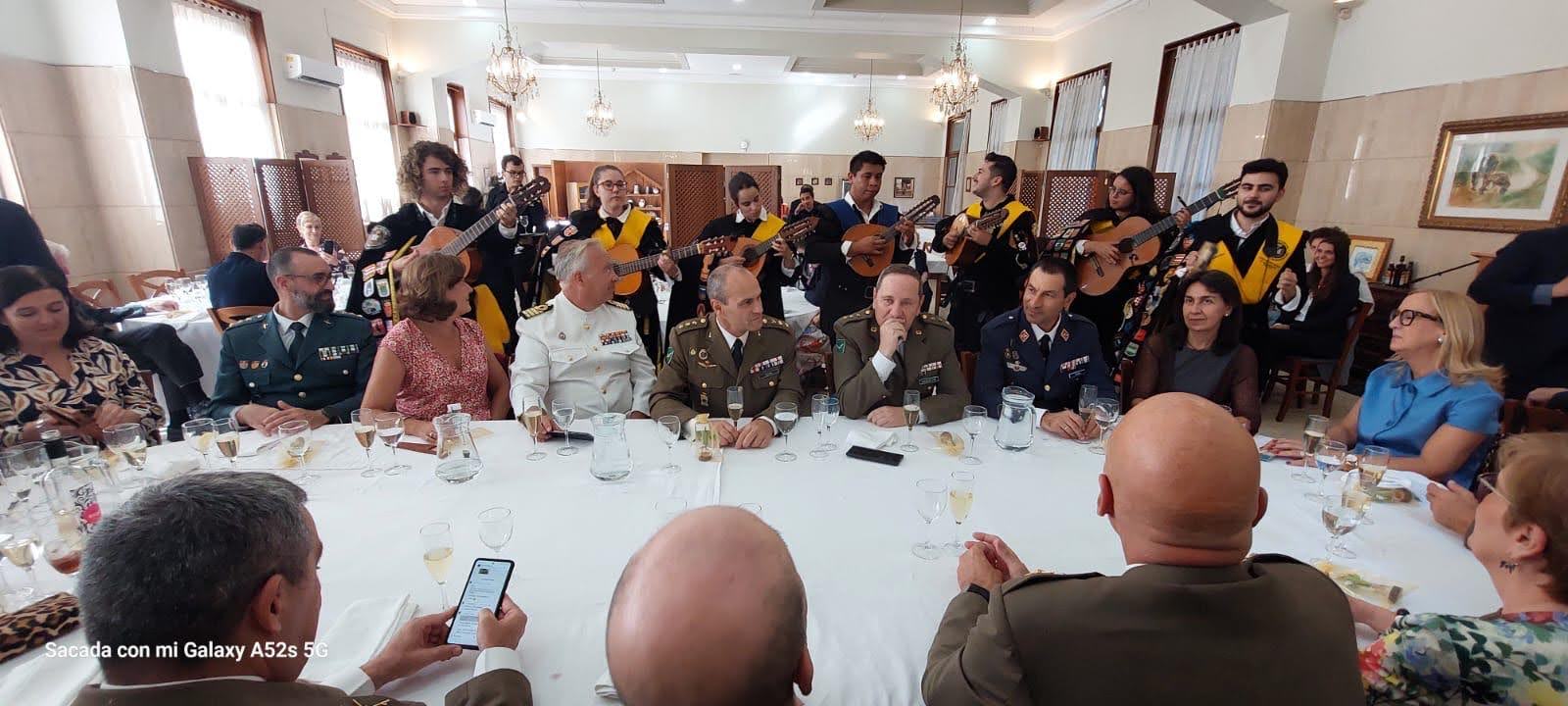 Posteriormente a la misa, nos dirigimos a la residencia Logística Militar de Pedralbes, donde disfrutamos de un aperitivo en su terraza y posterior comida. Antes se entregaron diferentes condecoraciones y reconocimientos, una de ellas al General Antonio Bernal.