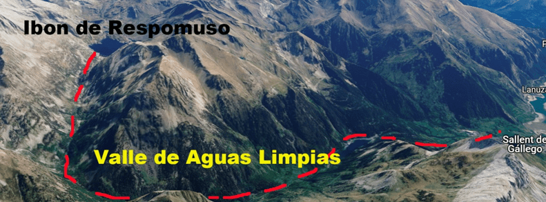 El primero una vez en la estación de esquí de Formigal, accedemos al Ibón de Respumoso, por una carretera que da acceso a la central Eléctrica de La Sarra, y desde este punto, continuar ascendiendo por el barranco de Aguas Limpias, hasta el Ibón de Respomuso. Una vez allí continuar la subida hacia el collado de Tebarray, atravesarlo y a continuación atravesar el collado del Infierno, que nos da acceso al barranco de Piedrafita, por el que bajamos a Panticosa. Antes de llegar a Panticosa nos desviamos hacia el sur-oeste para entrar en el valle Rincón del Verde y alcanzar el collado de Tendeñera, que nos da acceso al valle de Otal, y bajando por el, llegamos al valle del rio Ara, concretamente a San Nicolás de Bujaruelo.