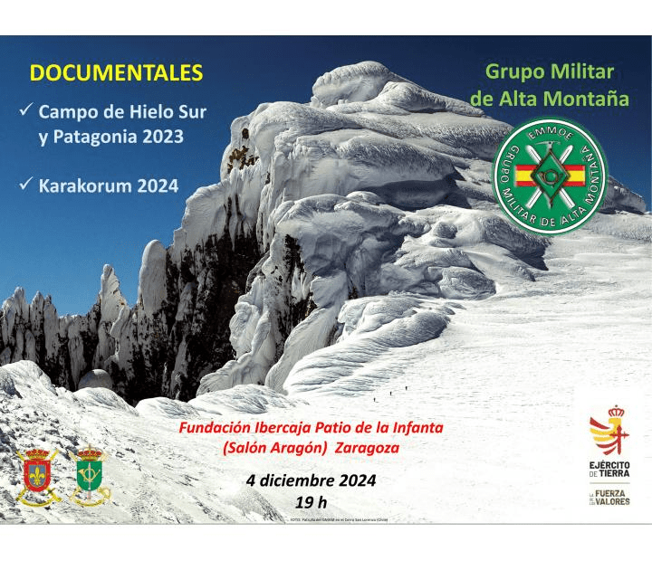 La Fundación Ibercaja «Patio de la Infanta» ha programado, en colaboración con el Grupo Militar de Alta Montaña de la Escuela Militar (GMAM) de Montaña y Operaciones Especiales (EMMOE), la proyección de dos vídeos-documentales de dos de las últimas expediciones realizadas por dicho Grupo.