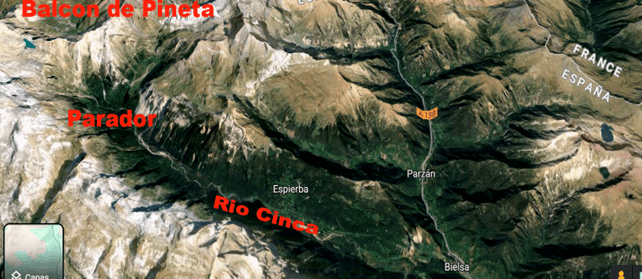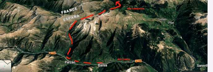 Una vez llegados al valle de Pineta, y para llegar a Viados, bajamos desde el Parador de Pineta, por el valle del Cinca, hasta Bielsa. Y desde ahí remontamos al norte hasta Parzan, donde tomamos en dirección Este el valle de Urdiceto, remontándolo hasta el collado de Urdiceto o de Los Caballos. Desde el collado de Urdiceto bajamos al valle del Cinqueta, y desde ahí tomamos dirección Norte, por el valle del Cinqueta primero y después por el barranco de Añes Cruces, hasta llegar al collado de Chistau, pasando por el campamento de Virgen Blanca y el refugio de Viados.