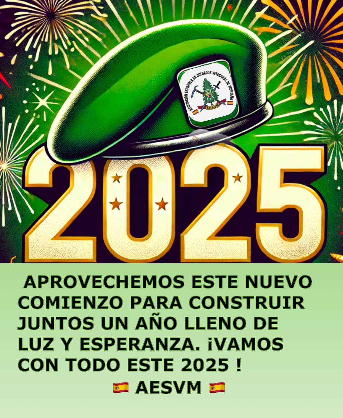 ¡Feliz Año Nuevo 2025!, para toda la comunidad de la Asociación Española de Soldados Veteranos de Montaña en nuestra página web.