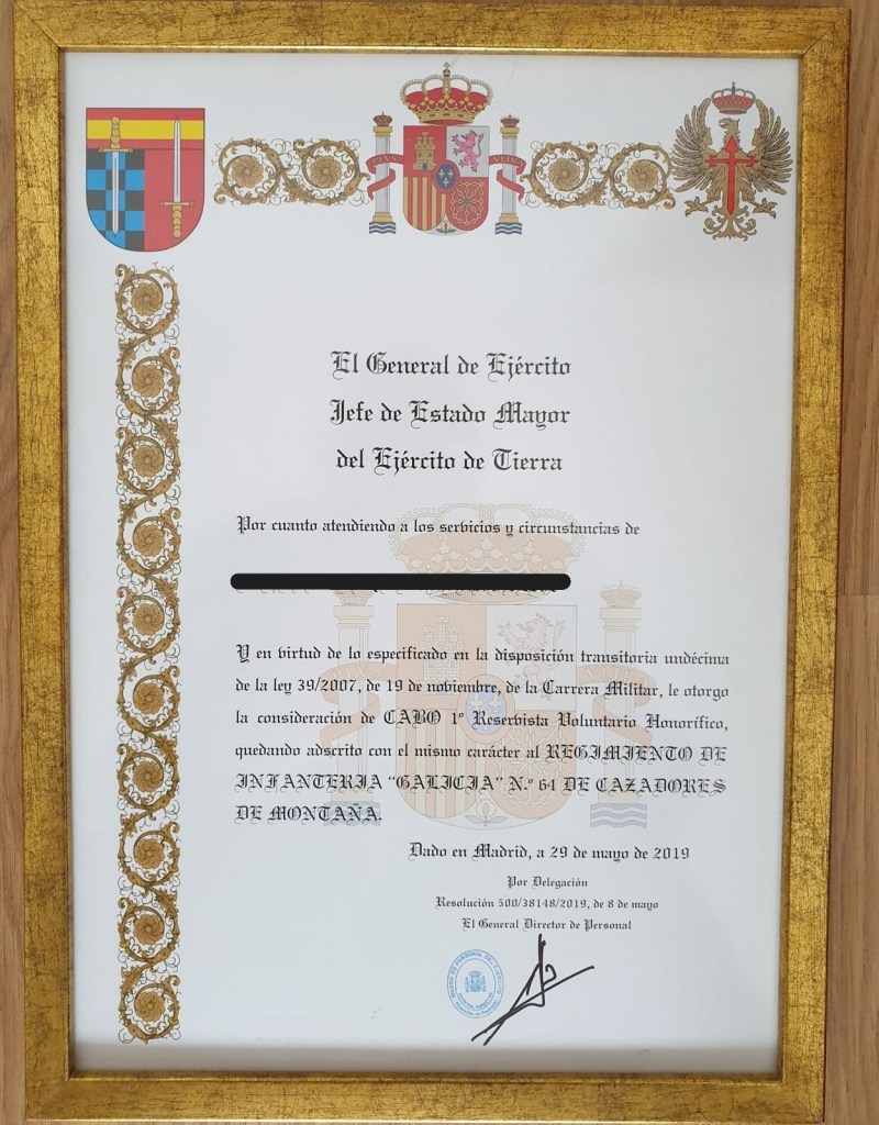 A continuación se muestra la comunicación que nos ha hecho llegar Javier sobre este asunto, que esperamos anime a muchos a obtener esa condición de Reservista Voluntario Honorífico, cuyo modelo de diploma se muestra a continuación.