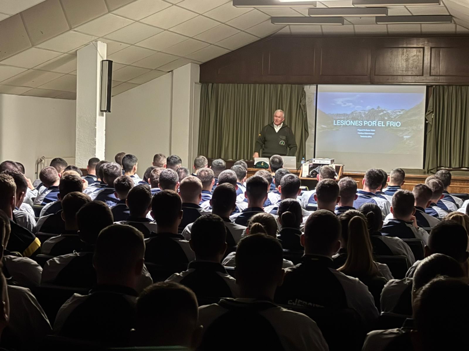 Además de las actividades propias de vida y movimiento en montaña invernal, los cadetes recibieron clases teóricas sobre diversos temas incluyendo una charla impartida por un miembro médico de nuestra asociación, Miguel Dutor, sobre las lesiones por el frío que fue seguida con mucho interés por parte de los alumnos.