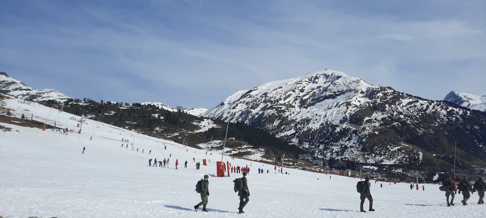 La jornada vivida hoy ha sido una muestra más de nuestro lema «La Montaña nos une», ya que una decena de socios, con nuestro Presidente al frente, hemos compartido hoy con nuestros compañeros en activo el esfuerzo que requiere realizar cualquier actividad montañera de nuestras Unidades de Montaña, alguno se ha atrevido a hacer el mismo recorrido que las columnas organizadas por el MTM, una pareja han aprovechado la mañana para esquiar en las pistas de esquí, otro grupo de cuatro socios han realizado un recorrido por la estación de Candanchú, que inicialmente pretendía ser una raquetada, pero la escasez de nieve ha aconsejado mejor hacerlo como un recorrido con nieve ….. a ratos y, finalmente, un trio de socios han preferido acudir a la comida de campo celebrada al finalizar las anteriores actividades montañeras en el destacamento militar de Rioseta.
