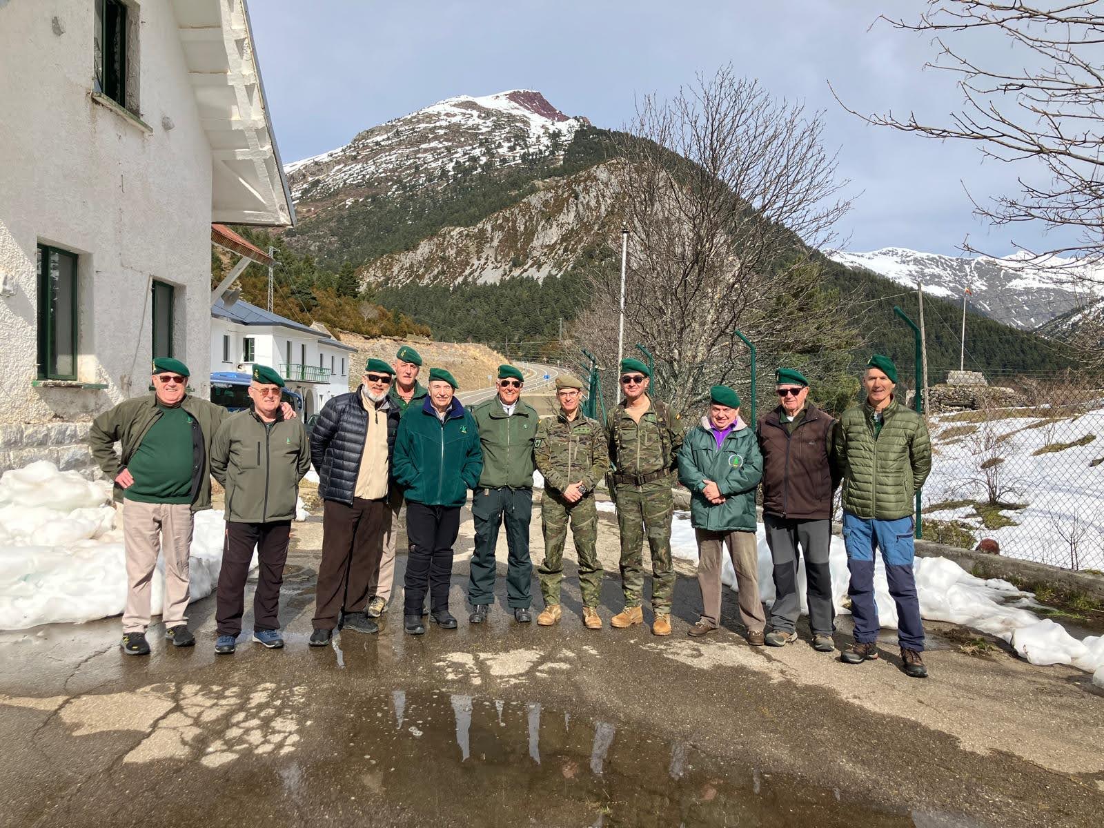 La jornada vivida hoy ha sido una muestra más de nuestro lema «La Montaña nos une», ya que una decena de socios, con nuestro Presidente al frente, hemos compartido hoy con nuestros compañeros en activo el esfuerzo que requiere realizar cualquier actividad montañera de nuestras Unidades de Montaña, alguno se ha atrevido a hacer el mismo recorrido que las columnas organizadas por el MTM, una pareja han aprovechado la mañana para esquiar en las pistas de esquí, otro grupo de cuatro socios han realizado un recorrido por la estación de Candanchú, que inicialmente pretendía ser una raquetada, pero la escasez de nieve ha aconsejado mejor hacerlo como un recorrido con nieve ….. a ratos y, finalmente, un trio de socios han preferido acudir a la comida de campo celebrada al finalizar las anteriores actividades montañeras en el destacamento militar de Rioseta.