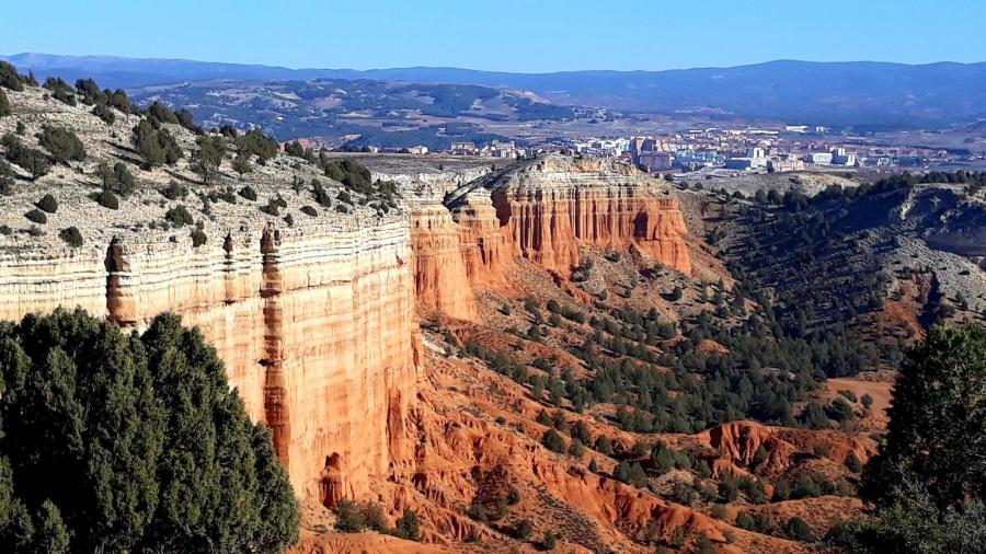 Son elevaciones del terreno, producidas por la erosión, que tienen su punto más alto en la Muela de Teruel, donde pudimos visitar las trincheras de la Batalla de Teruel durante la Guerra Civil. Los colores, amarillos, ocres y anaranjados que dan tonos increíbles y cambiantes con el transitar del sol.