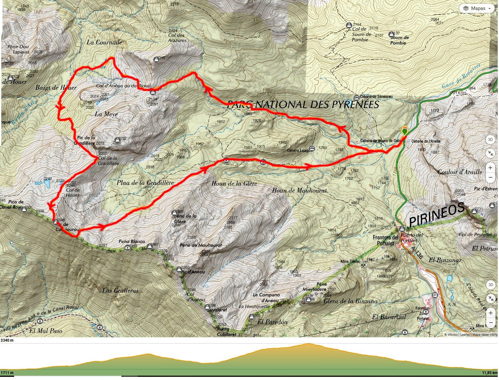 Itinerario realizado: Parking de Anéou – Col d´Anéou – Gave de Bious – Col de la Gradillère – Pico de Canal Roya (2.345 m.) – parking de Anéou.