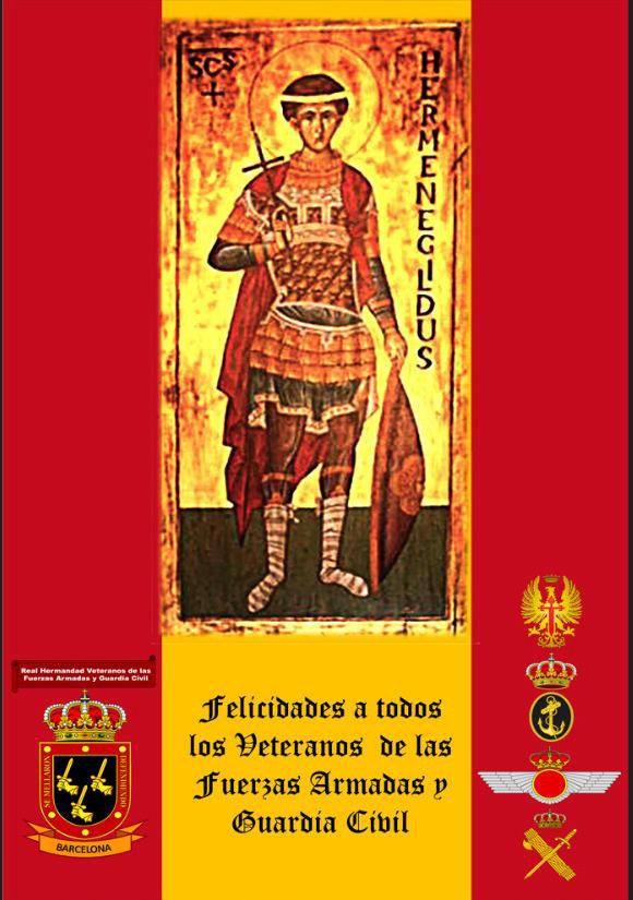 Hoy domingo, 13 de abril, se celebra la festividad de San Hermenegildo, príncipe y mártir. Patrón de la Real Hermandad de Veteranos de las Fuerzas Armadas y la Guardia Civil. Fue tomado como Patrón de la Hermandad, desde el principio de su fundación en Valladolid, el 18 de febrero de 1957.