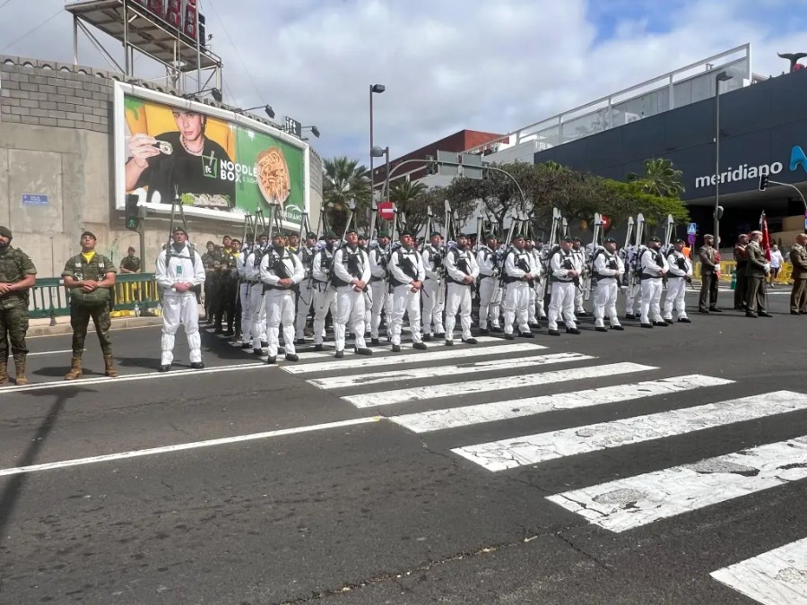 Un contingente de aproximadamente medio centenar de militares se ha desplazado hasta Tenerife. La mayoría participaron en el desfile, donde destacaron las inconfundibles boinas verdes de montaña, símbolo de esfuerzo, tradición y compromiso.