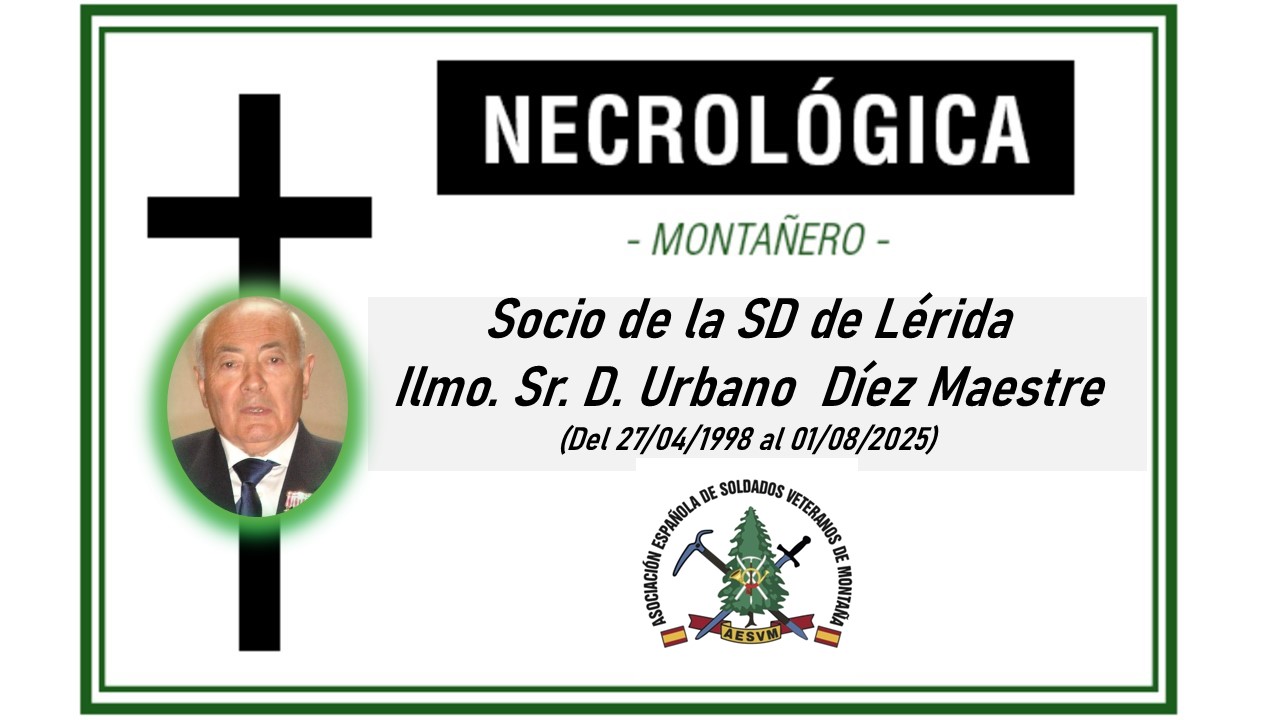 Urbano Díez Maestre. Coronel de Infantería, ha fallecido en Lleida a lo 89 años. El coronel Urbano (como era conocido) fue artillero antes de su ingreso en la Academia General Militar.