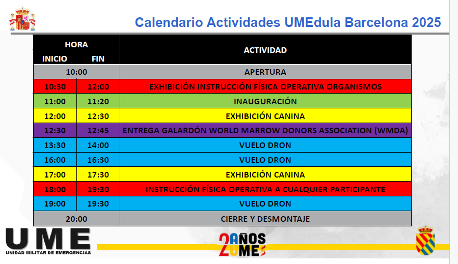 La Subdelegación de Defensa en Barcelona comunica la información relativa al evento UMEDULA: DONA MÉDULA, DONA VIDA, que tendrá lugar el próximo 20 de septiembre en Barcelona, organizado por la Unidad Militar de Emergencias.