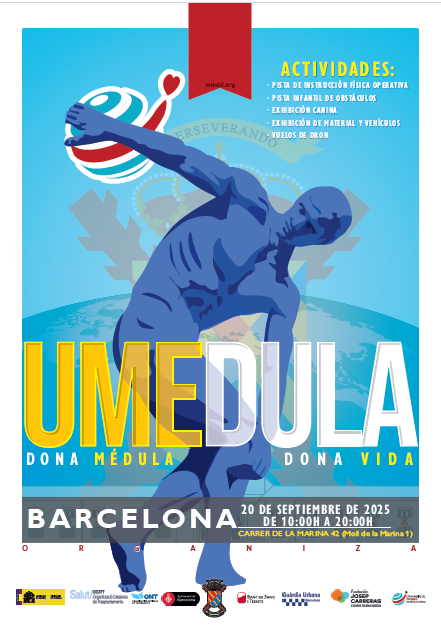 La Subdelegación de Defensa en Barcelona comunica la información relativa al evento UMEDULA: DONA MÉDULA, DONA VIDA, que tendrá lugar el próximo 20 de septiembre en Barcelona, organizado por la Unidad Militar de Emergencias.